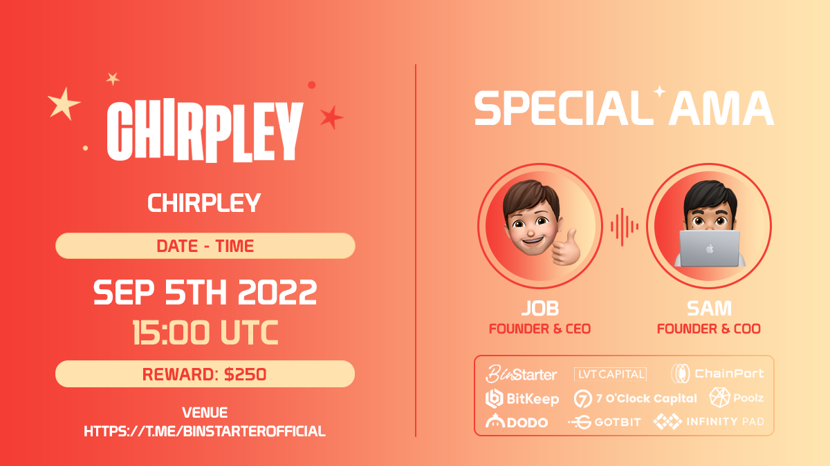 BinStarter is very honored to have an opportunity to launch the IDO event for the Chirpley project. Chirpley is the world’s first decentralized peer-to-peer influencer marketplace. A decentralized ecosystem powered by artificial intelligence and machine learning, which matches nano and micro-influencers with brands. Chirpley’s algorithm then calculates a