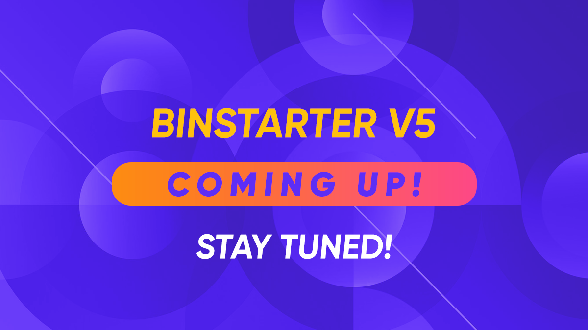 BinStarter V5 is Coming Soon! We are taking BinStarter to a whole new level with an epic update as a result of monitoring and evaluating all our community members’ requests over the course of a year. We would like to thank all our community members, software and business development experts