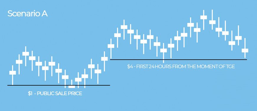 Let's take a project IDO and listing that has 25% at the TGE, 25% monthly vesting over 3 months, and 1 USD public sale price as an indication: