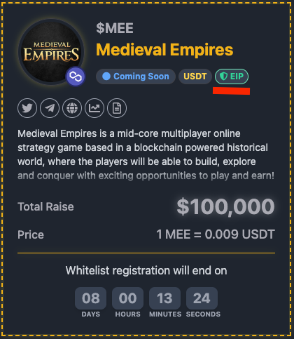 Previously signed agreement projects are not involved with this protocol. You can see the projects that are involved with the EIP sticker in the “IDO PROJECTS” section.