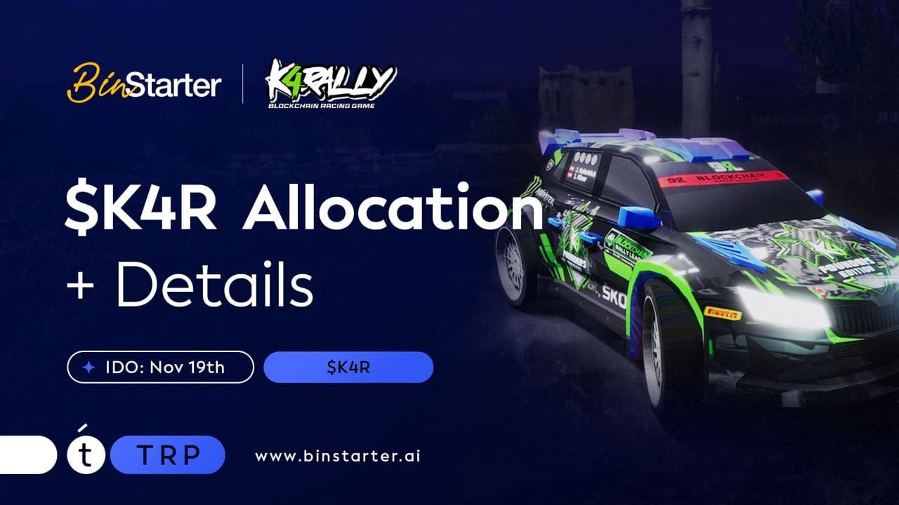 BinStarter is very honored to have an opportunity to launch the IDO event for the K4 Rally project, a groundbreaking blockchain-based rally racing game that bridges the gap between real-world rallying and Play2Earn gaming. This collaboration marks another milestone in our commitment to supporting innovative projects in the blockchain space.