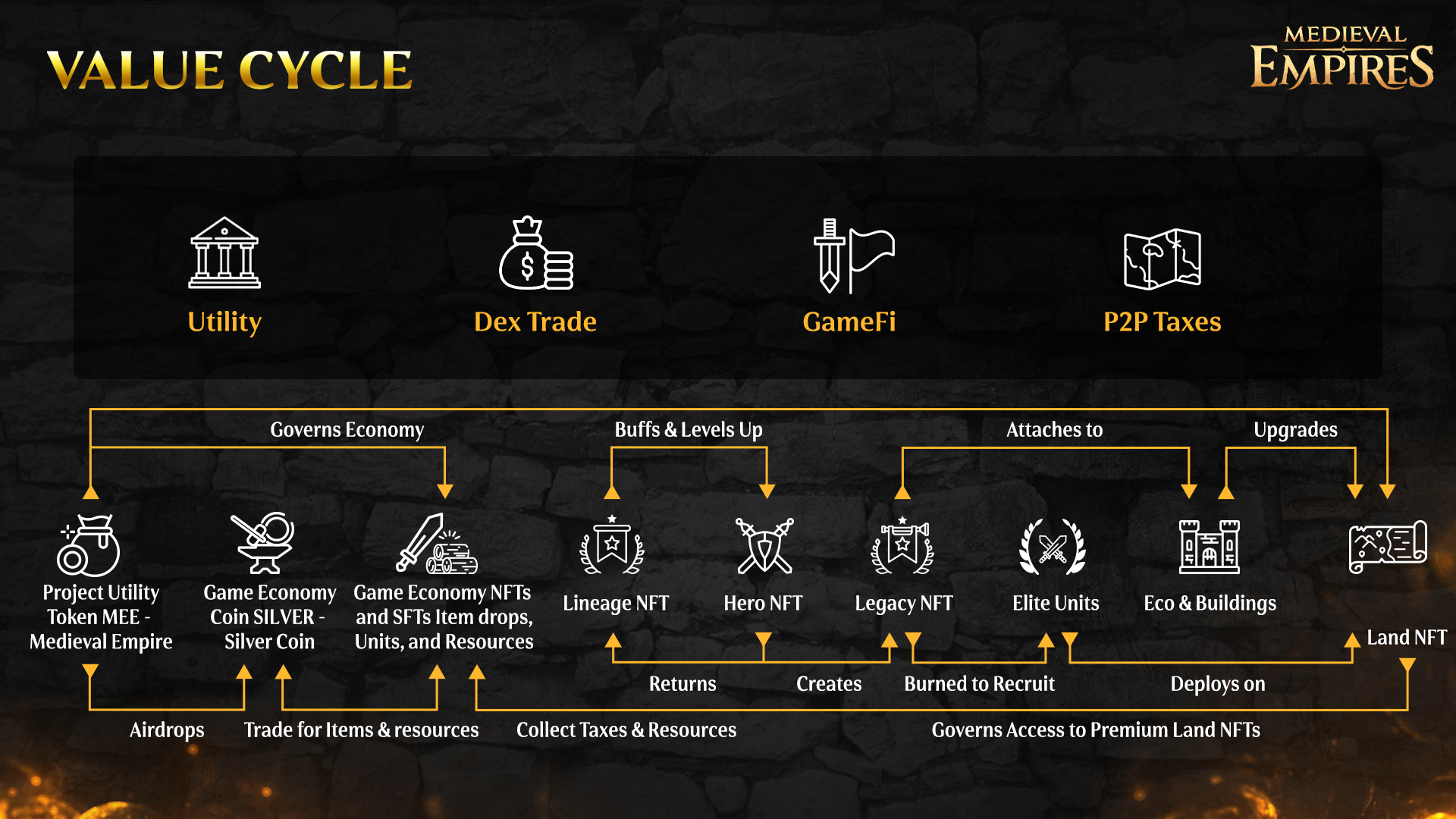 Value Cycle The Value Cycle demonstrates the play and own part of the game and how players can generate value through Medieval Empires.
